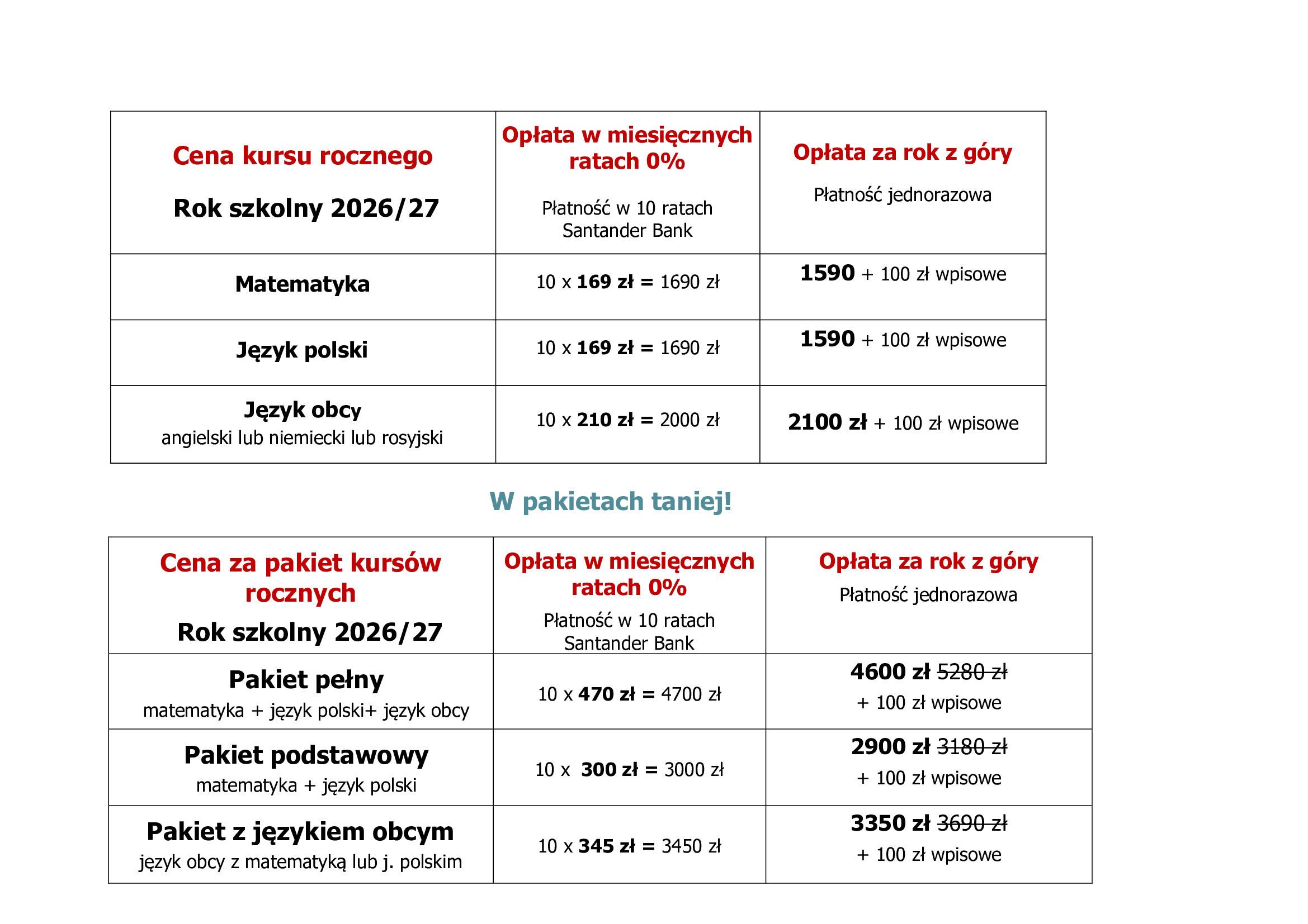 o 100 zł wpisowego, które w przypadku rezygnacji z kursu/kursów nie podlega zwrotowi.